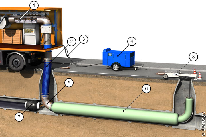 Inpipe-Verfahren in Anlehnung an [FI-Teerb] - Lichthärtung mit UV-Lampenzug. [Quelle: visaplan GmbH]