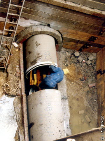 In der Regel werden die Rohre jeweils einzeln in die zu sanierende Haltung eingefahren, vor Ort abgelassen und z.B. mittels Rohrzuggeräten zusammengezogen, wobei sich immer mindestens eine Person vor Ort befinden muß.