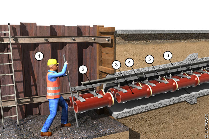 Verlegung von Steinzeugrohren mit Hilfe einer Kranbahn in Anlehnung an [Kuntz74] [Quelle: STEIN Ingenieure GmbH] |