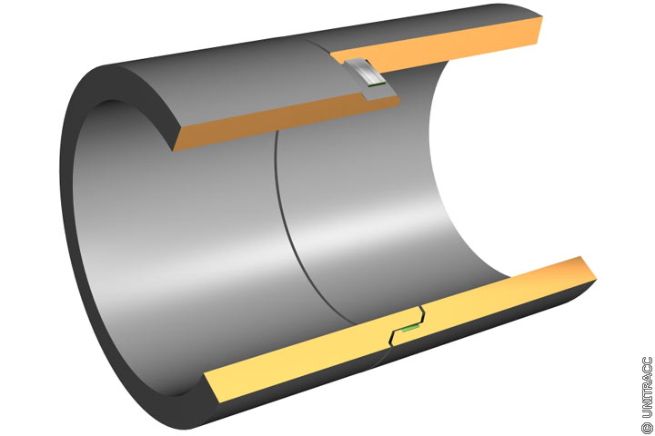 Daneben gibt es Spezialentwicklungen für das Kurzrohrverfahren, z.B. Verbindung mit innenliegender Steckmuffe (Bild 5.3.2.2.2.2-2) , Verbindung mit innenliegendem BKU-Steckring (Bild 5.3.2.2.2.2-3) bzw. außenliegendem Stahlführungsring (Bild 5.3.2.2.2.2-4) , PE-HD-Rohr mit Steckmuffe und Verschweißung mittels Induktions-Schweißband (Bild 5.3.2.2.2.2-5) , Kunststoffrohre mit Schraubmuffenverbindung (Bild 5.3.2.2.2.2-6) sowie mit "Snap-in" oder "Snap-Lock"-Verbindung (Bild 5.3.2.2.2.2-7) (Bild 5.3.2.2.2.2-8) (Bild 5.3.2.2.2.2-9) .
