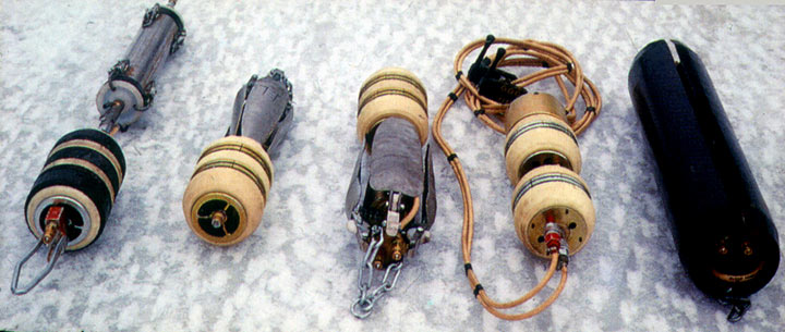 Dabei werden zunächst die gegenseitigen Abstände der Anschlußkanäle mit Hilfe einer Kanalfernsehkamera ermittelt, so daß die entsprechende Anzahl von Kurzrohren aus Polypropylen (PP) mit Baulängen von 300 mm und 500 mm sowie Außendurchmessern DA 110 bis DA 250 zugkraftschlüssig miteinander verbunden und nach dem Einziehverfahren in den Kanal eingebracht werden können. Da der Zugkopf in der Regel nicht manuell gelöst und geborgen werden kann, kommt eine hydraulisch im Anfangsrohr verspannte und ferngesteuert lösbare Vorrichtung zur Anwendung (Bild 5.3.2.2.2.10-4) (Bild 5.3.2.2.2.10-5) (Bild 5.3.2.2.2.10-6) (Bild 5.3.2.2.2.10-7) (Bild 5.3.2.2.2.10-8) (Bild 5.3.2.2.2.10-9) (Bild 5.3.2.2.2.10-10) (Bild 5.3.2.2.2.10-11) .