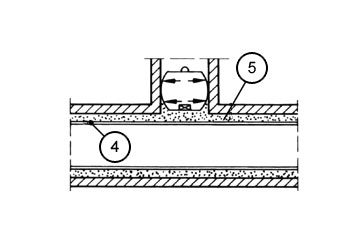 Das "Duraton-System" [Gale82] ist konzipiert für Leitungen ohne Ringraumverfüllung. Der Inliner wird hierbei nur im Anschlußbereich mit einer Polyurethaninjektion des Ringraumes fixiert. Dies erfolgt über einen Packer mit Injektionsöffnungen, der über den Anschlußkanal eingeführt und positioniert wird (Bild 5.3.2.2.1.1.5.3-12) . Danach wird die Anschlußöffnung hergestellt (Bild 5.3.2.2.1.1.5.3-12) .