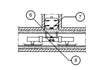 Zur Erleichterung des Auffindens der Einbindestellen wurden in Großbritannien Systeme konzipiert, bei denen vor dem Einziehen des Inliners in die Anschlüsse ein Packer entweder mit einem Sender oder einer radioaktiven Strahlungsquelle eingebracht wird. Ein im Schneid- oder Bohrgerät integrierter Empfänger ermöglicht dann deren exakte Positionierung (Bild 5.3.2.2.1.1.5.3-3) (Bild 5.3.2.2.1.1.5.3-4) (Bild 5.3.2.2.1.1.5.3-5) (Bild 5.3.2.2.1.1.5.3-6) .