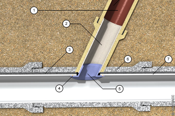 Einbindung eines Anschlußkanales in geschlossener Bauweise mit Hilfe einer Hutmanschette (AK-System) [FI-Stehm] - Einbaugerät mit Hutmanschette in Einbauposition |