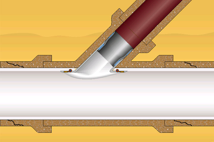 Compact Pipe Verfahren [FI-Wavin] - Prinzipdarstellung / Einbindung eines Anschlußkanals in geschlossener Bauweise |
