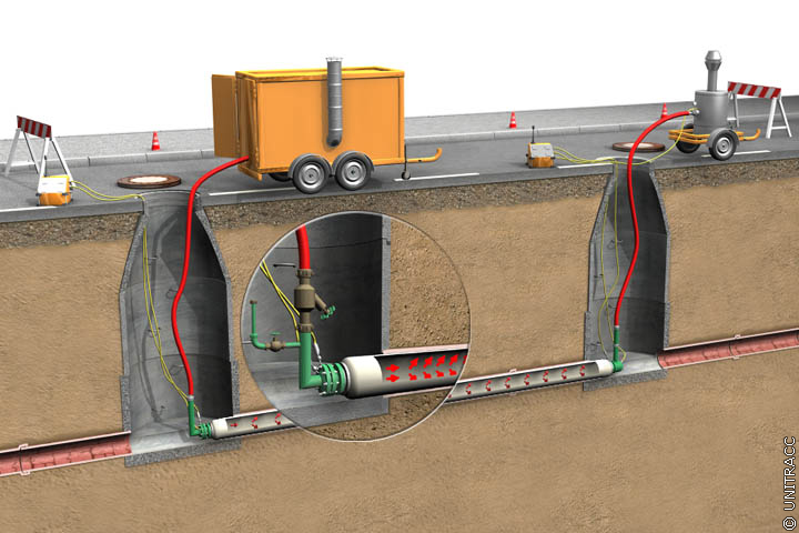 Compact Pipe Verfahren [FI-Wavin] - Verschluß des Rohrstranges für die Dampfeinleitung |