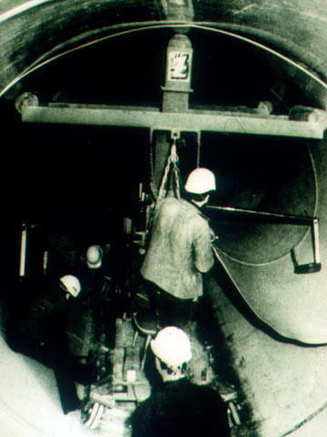 Die Plattenstöße werden bei den Auskleidungen mit PVC-U-Platten mit aufgeschweißten PVC-Streifen überbrückt, wobei eine Stoßkante werkseitig und die zweite vor Ort geschweißt wird. Bei der Auskleidung mit PP- und PE-HD-Platten werden die Stöße durch V-Naht-Schweißungen ebenfalls vor Ort geschlossen, d.h. Dehnungselemente sind bei dieser Auskleidung nicht vorhanden.