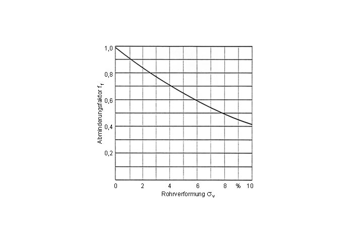 Abminderungsfaktor in Abhängigkeit von der Rohrverformung [FI-Hoech] [Koch85]