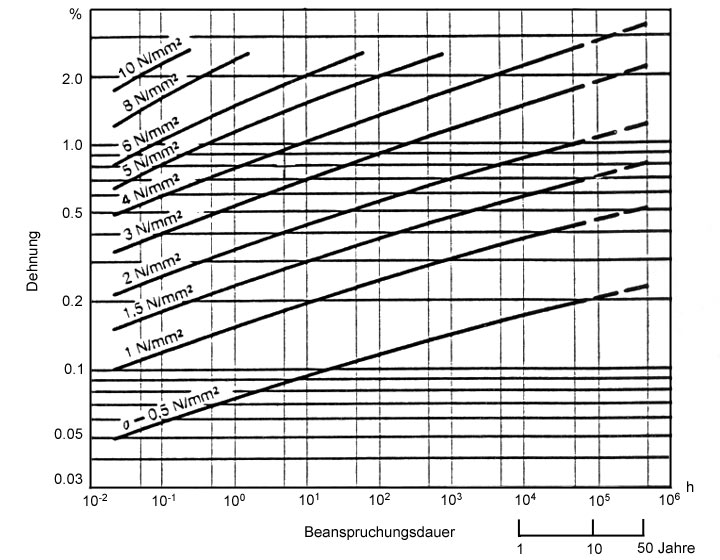 Für Rohre aus PP-Copolymer gelten die gleichen Werte. Hierbei ist der Sicherheitsfaktor gegen Bruch > 2.