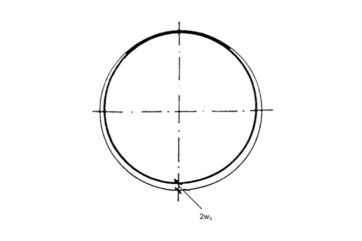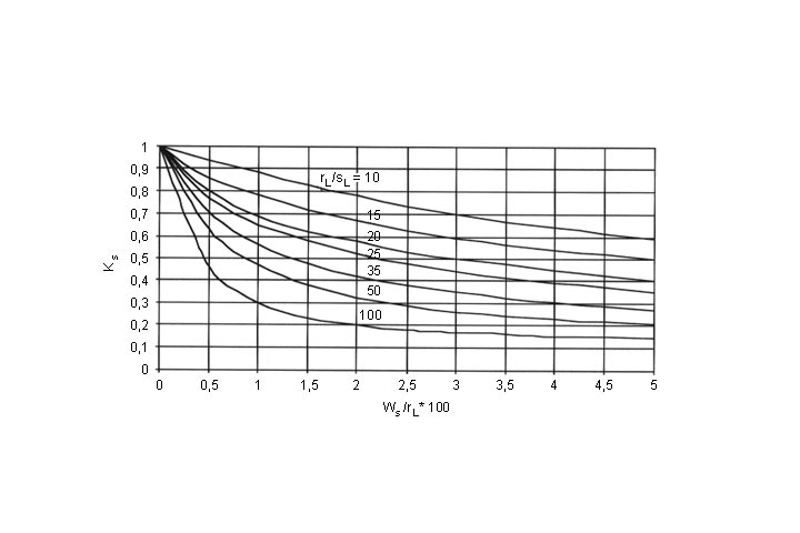 Der Spalt ist definiert als konstanter Abstand ws zwischen Inlineraußen- und Altrohrinnenwandung (Bild 5.3.2.6.1.2.7-1) . Dadurch verringert sich die aufnehmbare Last des Inliners. Die Abminderung der maximal aufnehmbaren Last des Inliners ist vom Radius-/ Wanddickenverhältnis rL /sL des Inliners abhängig und wird im Stabilitätsnachweis durch die Abminderungsfaktoren κv und κs berücksichtigt (Bild 5.3.2.6.1.2.7-2) (Bild 5.3.2.6.1.2.7-3) .