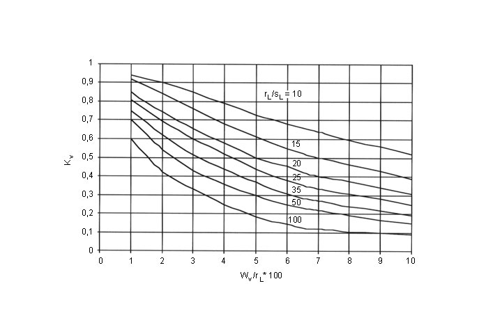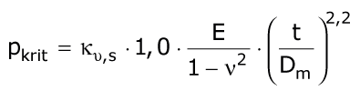 Der für das Beulen maßgebende Öffnungswinkel 2φ1 wurde für den kleinsten Beuldruck ermittelt, so daß für den Stabilitätsnachweis nur noch die Lage φv und die Tiefe der Vorverformung frei wählbare Größen sind. Die aufgrund von Parametervariationen ermittelten Werte des Abminderungsfaktors κv können (Bild 5.3.2.6.1.2.7-2) entnommen werden. Mit 1% < wv < 10 % und 10 < rL/sL < 100 sollen die in der Praxis vorkommenden Fälle abgedeckt werden.