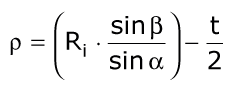 ρ = mittlerer Radius des verformten Inliners über α, β.