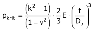 Wird der nicht am Mantelrohr anliegende Teil des Inliners als kreisförmiger, eingespannter Bogen unter gleichförmigem Außendruck betrachtet, so ergibt sich der kritische Beuldruck pkrit zu (s. [Timos61] ):