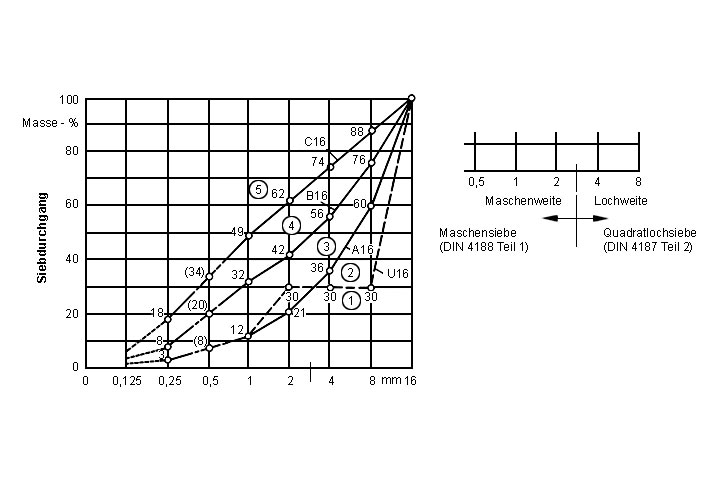 Sieblinie für Beton nach DIN 1045 [DIN1045:1988] - mit einem Größtkorn von 16 mm |