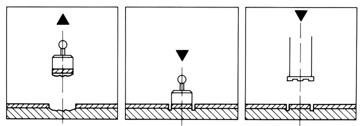 In der Halbschale befindet sich in Abhängigkeit der Nennweite ein definiertes Gemisch aus Wasser und verschiedenen Zuschlagstoffen, durch welches beim Kippen der mechanische Angriff entsteht. Der Versuch wird mit 2×10 5 Lastspielen gefahren. Der Abrieb wird mittels mechanischer Meßuhren, die über eine Meßbrücke geführt werden, an vorher festgelegten Stellen bestimmt.