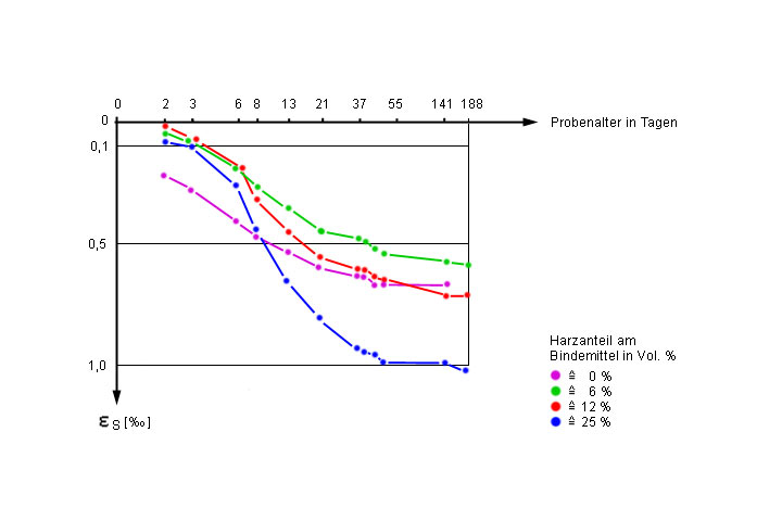 Schwindkurven von reaktionsharzmodifizierten Mörteln [Boue85a]