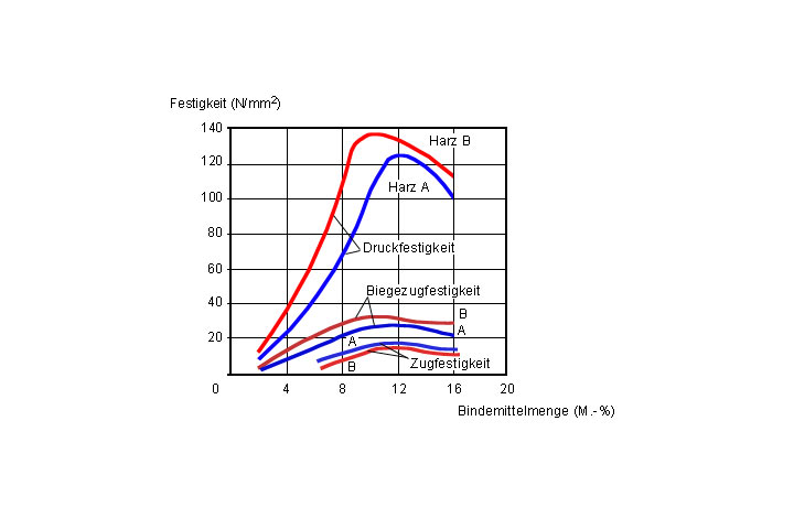 Abhängigkeit der Festigkeiten eines Reaktionsharzmörtels vom Mischungsverhältnis (Beispiel) [Sasse94]
