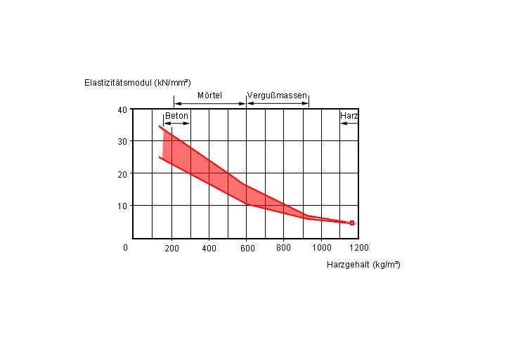 E-Modul von Reaktionsharzbetonen als Funktion des Harzgehaltes [Sasse94]