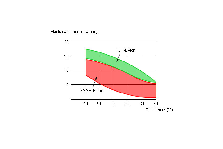 Der Elastizitätsmodul hängt wie die Festigkeiten wesentlich von den Eigenschaften des Bindemittels, dem Mischungsverhältnis und der Temperatur ab (Bild 5.3.1.3.4-3) (Bild 5.3.1.3.4-4) .