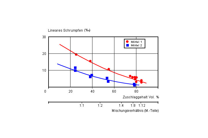 Schrumpfen von Reaktionsharzmörteln in Abhängigkeit vom Zuschlaggehalt [Sasse94]