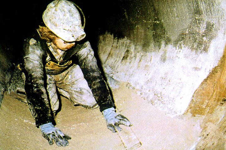 Reparatur eines korrodierten Kanalsohlenbereiches [FI-Deilm81] - Sandstrahlen der Kanalsohle |