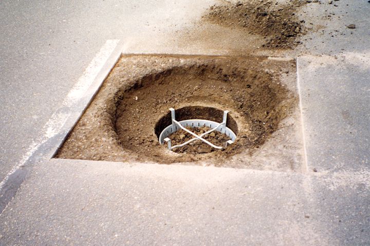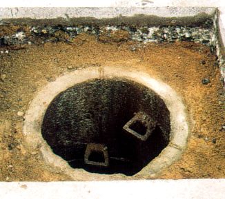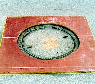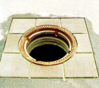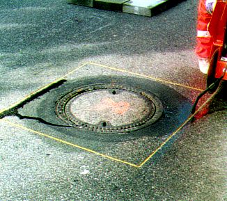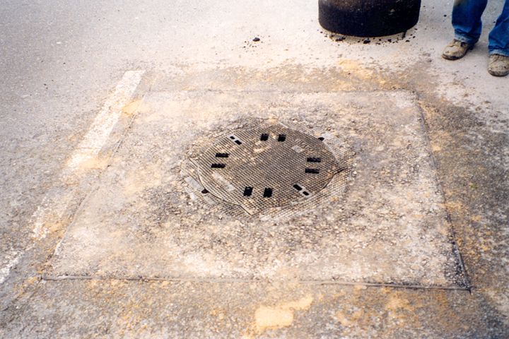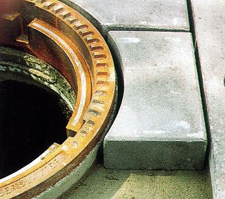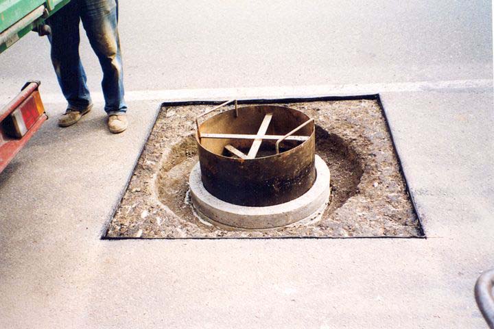 Hierbei unterscheidet man die Varianten einer kreisförmigen Umpflasterung des Rahmens mit bituminösem Fugenverguß (Bild 5.2.1.1.2-1) (Bild 5.2.1.1.2-2) (Bild 5.2.1.1.2-3) (Bild 5.2.1.1.2-4) (Bild 5.2.1.1.2-5) (Bild 5.2.1.1.2-6) (Bild 5.2.1.1.2-7) (Bild 5.2.1.1.2-8) (Bild 5.2.1.1.2-9) (Bild 5.2.1.1.2-10) (Bild 5.2.1.1.2-11) (Bild 5.2.1.1.2-12) oder das Wiederherstellen der bituminösen Deckschicht bis unmittelbar an die Schachtabdeckung.