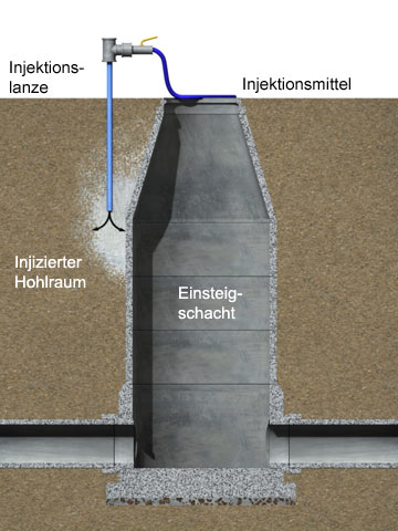 Injektion eines Hohlraumes im Bereich eines Einsteigschachtes [Quelle: STEIN Ingenieure GmbH] |