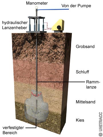 Injektion im Lockergestein mittels Rammlanze in Anlehnung an [Reute71] [Quelle: STEIN Ingenieure GmbH] |