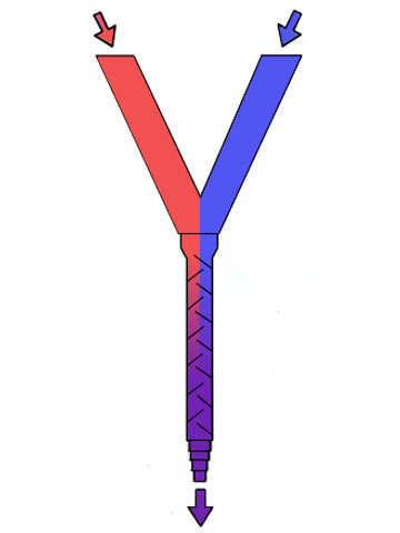 Beim Statikmischer werden die Materialkomponenten in einem Rohr zusammengeführt. Durch vielfache Strahlteilung entlang des Fließweges vermischen sich die Komponenten (Bild 5.2.2.2.1-5) (Bild 5.2.2.2.1-6) .