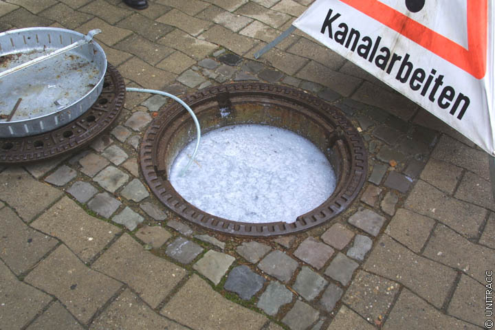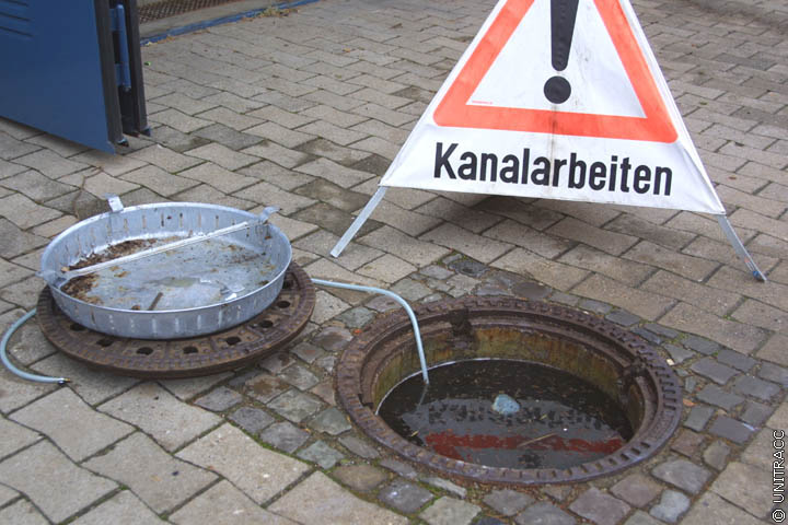 Sicherung des letzten Schachts der zu sanierenden Haltung [Quelle: STEIN Ingenieure GmbH] |