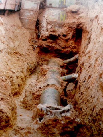 Bei großen Undichtigkeiten und/oder stark durchlässigen Böden in der Leitungszone ist es i.a. nicht möglich, den Druck konstant zu halten. In diesen Fällen wird der gesamte Injektionsprozeß mehrmals wiederholt, wobei die einzelnen Lösungen bereits nach nur kurzer Einwirkdauer wieder abgepumpt werden. Auf diese Art und Weise werden die vorhandenen Hohlräume nach und nach bis zur vollständigen Abdichtung mit dem sich bildenden Gel ausgefüllt.