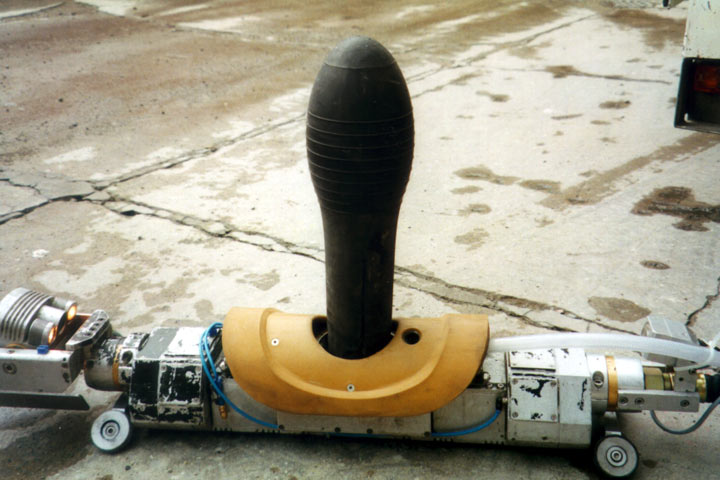 Packer für die Stutzensanierung im ausgefahrenen Zustand mit Druckluft beaufschlagt [FI-Janße] |
