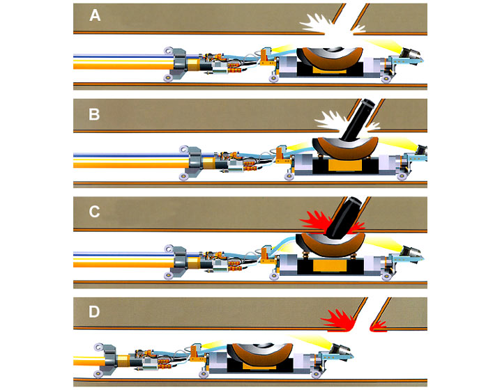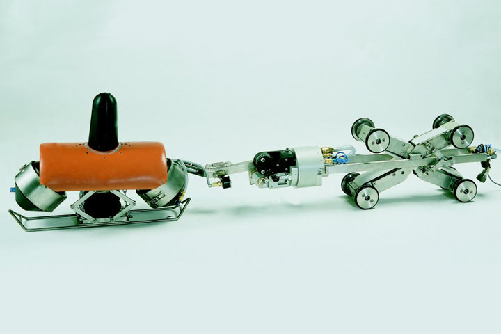 Ein weiterer Vertreter dieser Verfahrengruppe ist das System "kanaltec" . Mit zwei unterschiedlichen Robotern werden die Nennweitenbereiche DN 200 bis DN 300 sowie DN 350 bis DN 600 abgedeckt. Der Durchmesser des Anschlußkanals kann 100 bis 150 mm betragen.