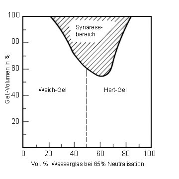 - Schrumpfung des Gels und Freisetzen von Wasser und löslichen Restprodukten während des Erhärtungsvorganges (Synärese) (Bild 5.2.2.1.4.1-1) .