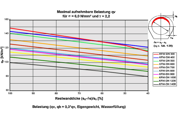 Bei entsprechenden Ursprungswanddicken und Randbedingungen ist es durchaus möglich, daß ein Rohr mit einer Restwanddicke von 40 % mit ausreichender Sicherheit noch statisch tragfähig ist.