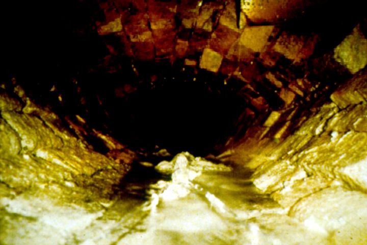 Ablauf eines teilweisen Einsturzes eines gemauerten Kanals infolge Korrosion des Fugenmörtels [WRC83] |