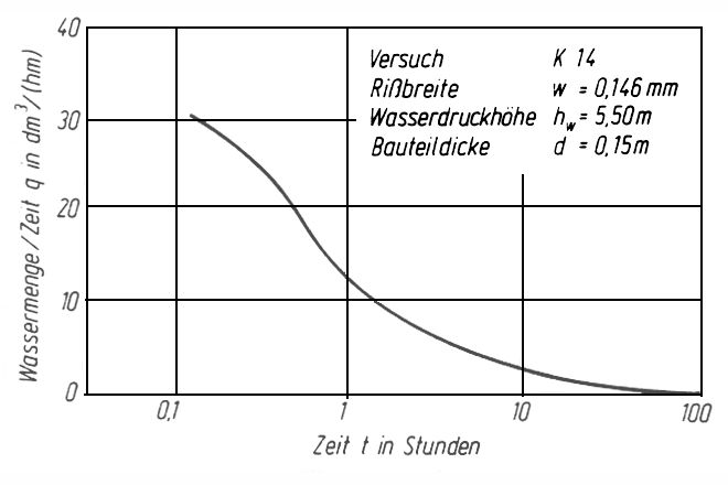 Bei zementgebundenen Werkstoffen geht man offensichtlich davon aus, daß sich Risse bis zu 0,2 mm Breite bei eindringendem oder durchsickerndem Wasser durch Nachhydratation der Zementteilchen oder durch Sintervorgänge selbsttätig und kraftschlüssig schließen [Mater82] [Mölle67] [Schäp86] [Manne77] .