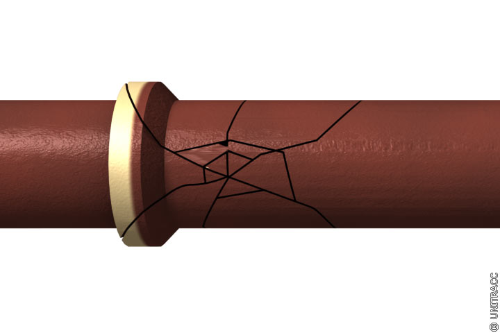 In beiden Fällen kommt es fast immer zur Scherbenbildung, bei der einzelne Rohrwandungsstücke komplett von Rissen umgeben sind.
