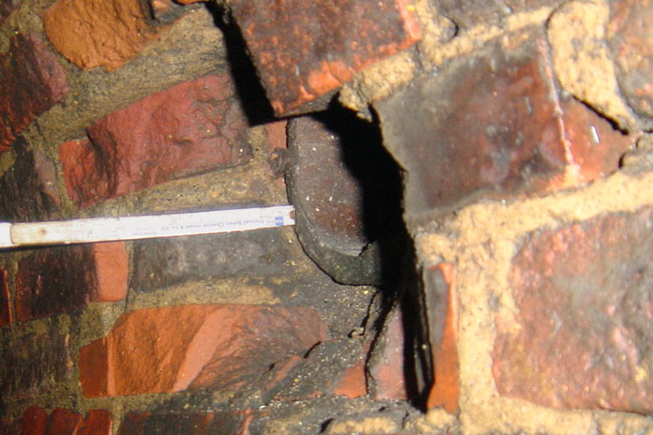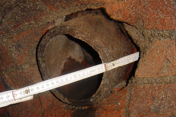 Nicht fachgerecht hergestellter Hausanschluß in einem Mauerwerkskanal [FI-Teerb] |