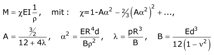 Das geometrisch-statische System des längsgebogenen Rohres wird dabei durch die Wanddicke d, den Rohrradius R, den Biegeradius r, den Innendruck p sowie den Elastizitätsmodul E und die Biegesteifigkeit B bestimmt.