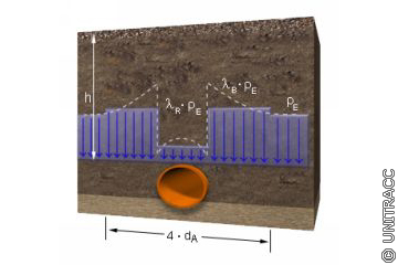 Annahme der Seitendruckverteilung bei Verformungen biegeweicher Rohre nach ATV-A 127 [ATVA127:1988] |