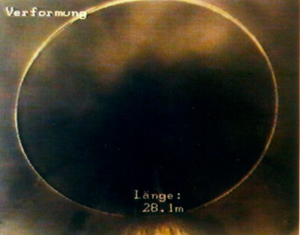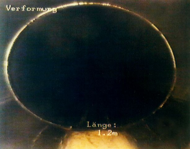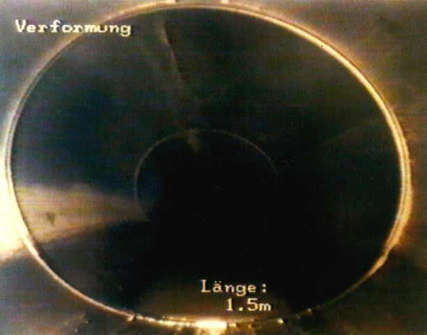Ähnliche Verformungen, die in situ an PE-HD-Rohren festgestellt wurden [Stein95j] , zeigen die Bilder (Bild 2.7.1-7) , (Bild 2.7.1-8) , (Bild 2.7.1-9) und (Bild 2.7.1-10) .