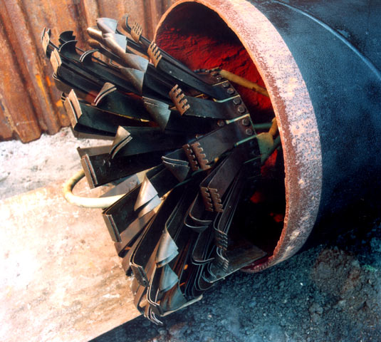 Je nach Verschmutzungsgrad kann ein stufenweiser Abbau der Ablagerungen durch verschiedene, der Situation angepaßte Molchtypen (Bild 3.2.4.2-11) erfolgen.