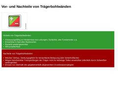 Bohrpfahlwände können in den dargestellten Varianten ausgeführt werden. Bei der tangierenden Bohrpfahlwand werden alle Pfähle bewehrt hergestellt. Der Abstand der Pfähle entspricht hierbei genau dem Pfahldurchmesser, so dass diese sich gegenseitig tangieren. Bei einer aufgelösten Bohrpfahlwand mit Ausfachung, ist der Abstand der Pfähle größer als der einzelne Pfahldurchmesser. Der auf diese Weise zwischen den Pfähle entstehende Zwischenraum wird entweder …